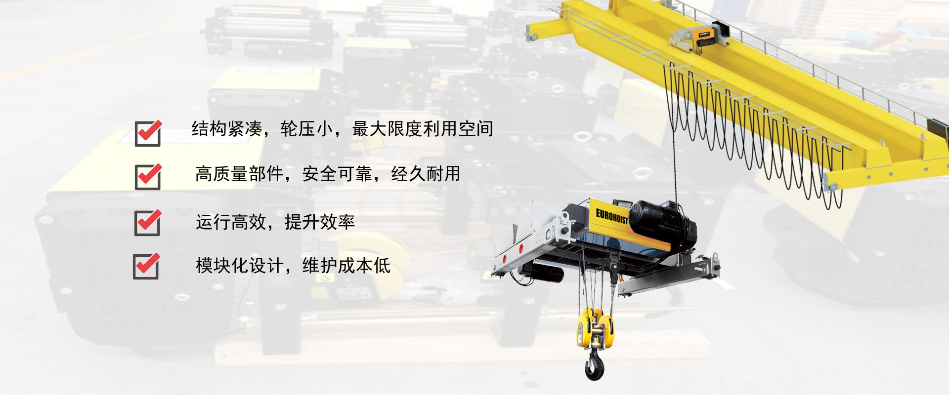 密歇爾起重機械(杭州)有限公司提供全面的起重輸送產(chǎn)品和服務(wù),產(chǎn)品覆蓋環(huán)鏈電動葫蘆(125Kg-80T),歐式鋼絲繩葫蘆,防爆葫蘆,懸臂吊,KBK柔性起重機,歐式起重機,起重馬達(dá),端梁,起重移動供電系統(tǒng)等,在國內(nèi)外被廣泛的應(yīng)用于生產(chǎn)車間,汽車,模具,機械制造,鐵路,船舶,物流搬運,現(xiàn)代化工廠流水線等工業(yè)及其它特殊用途。